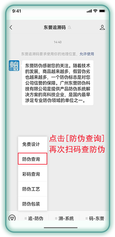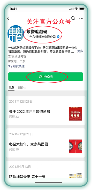 扫码关注公众号,再次扫码出结果,绑定官方公众号,拥有极强的防伪力度。