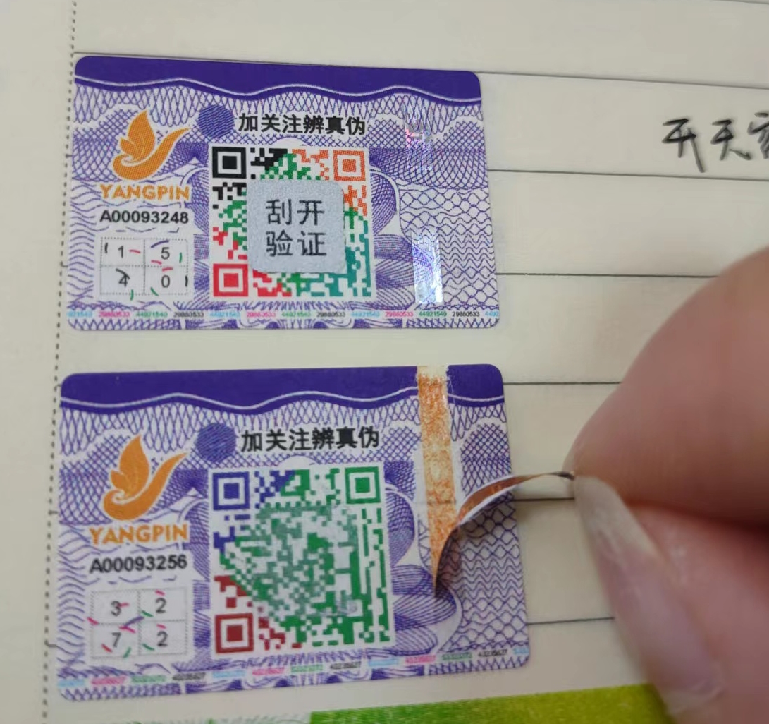 揭开留底防伪标签: